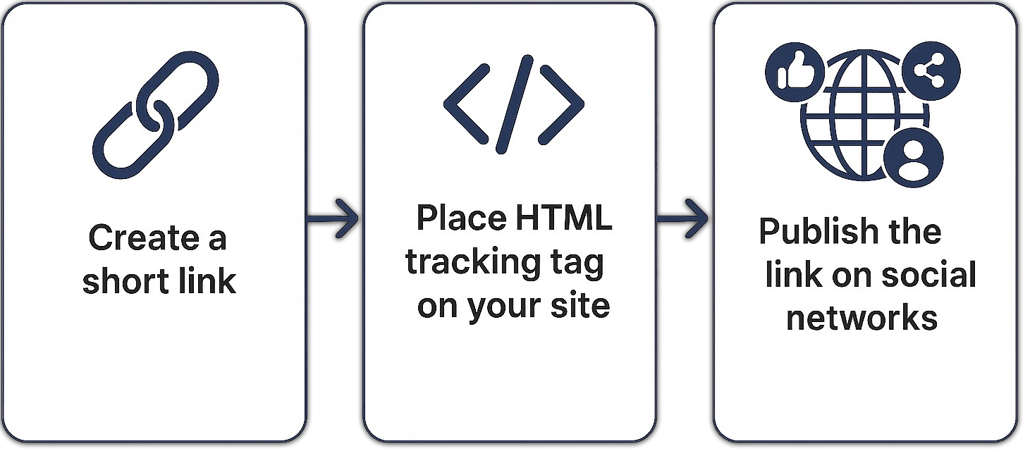 We don’t just create short links — we build full-featured tools with analytics. You can see what users do after clicking — from visiting your site to making a purchase or taking other important actions. This is shown as an activity or sales funnel for each link.